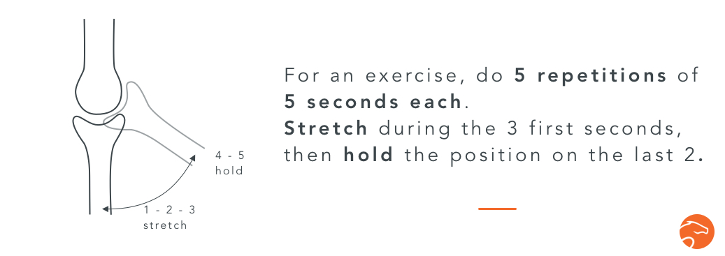 Concernant la durée de tenue des mouvements, le Dr Dallongeville propose une méthode facile : 5 répétitions de 5 secondes chacune, en utilisant la technique suivante :