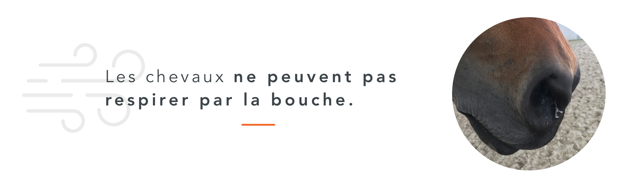 Les chevaux sont donc contraints de respirer par le nez ce qui est très limitant. En plus, leurs narines sont relativement petites et leurs “conduits respiratoires” sont assez fins. Ceci induit une grande résistance au moment de la respiration. Ils doivent donc “forcer” un peu plus que nous pour respirer.