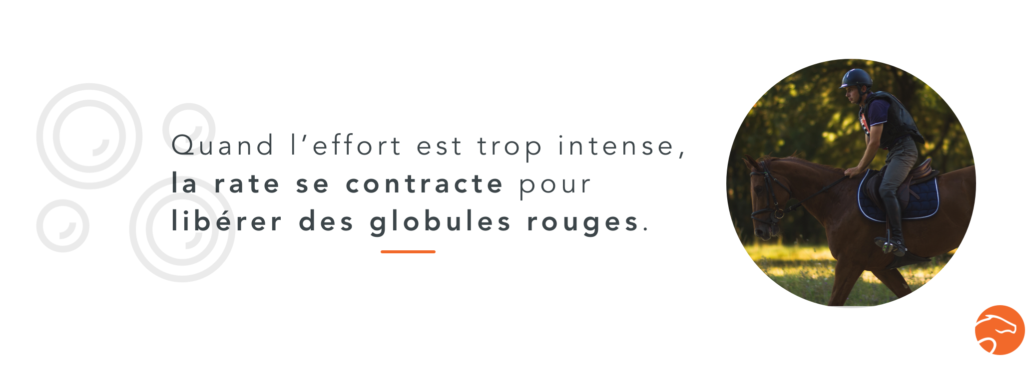 La rate libère alors dans le sang tous les globules rouges qu’elle contenait. Ceux ci vont venir à la rescousse pour capter plus d’oxygène et en apporter plus aux muscles pour qu’ils continuent de fonctionner ! Ainsi, leur hématocrite (le pourcentage du volume occupé par les globules rouge par rapport au volume sanguin total) va passer de 30-40% à 60-70% !!! Le cheval n’a donc pas besoin de piqûres d’EPO 💉 ni d’entraînement en altitude 🏔, contrairement à certains athlètes humains 🙄 !