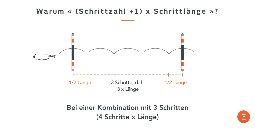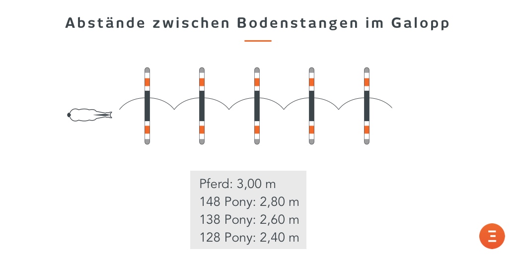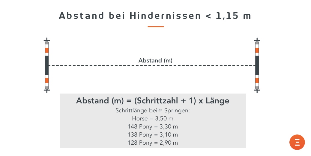 1. Der Abstand bei Bodenstangen oder Hindernissen unter 1,15 m wird mit folgender Formel berechnet: (Anzahl der Schritt +1) x Schrittlänge
