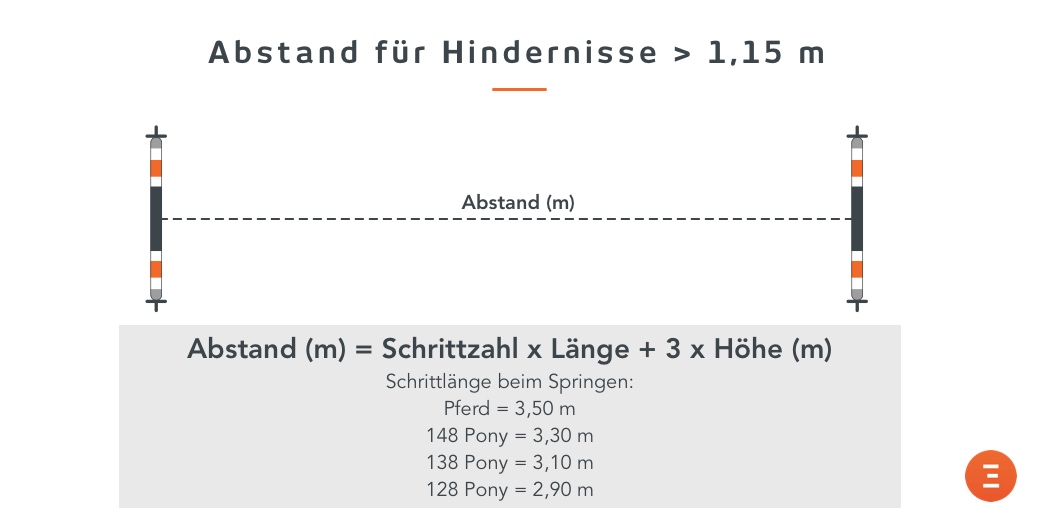 Bei Hindernissen über 1,15 m ändert sich die Formel für die Abstände ein wenig. Sie lautet wie folgt: