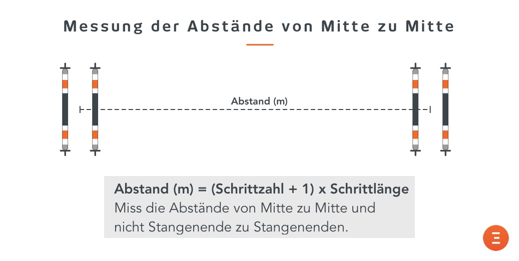 Abstand (m) = (Anzahl der Schritte + 1) x Schrittlänge (m)