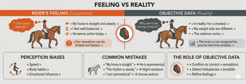 However, a disturbing reality remains: a rider’s feel is frequently… wrong. This isn’t due to a lack of talent, but because human perception is naturally limited, biased, and influenced by numerous factors. Understanding the gap between feel and reality is a key step toward objective, effective, and sustainable progress.