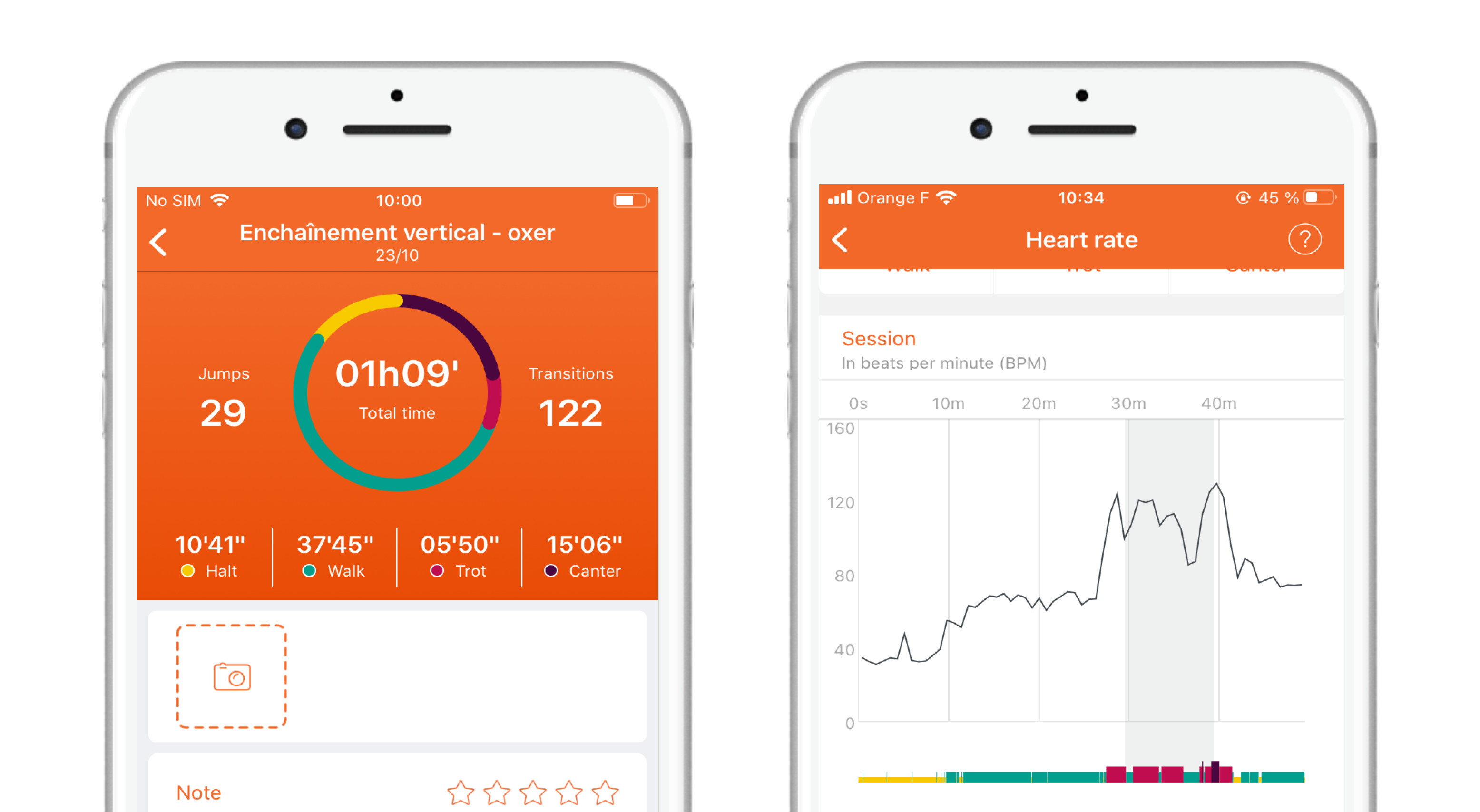 Heart rate monitoring during this type of session is also important. Doing a lot of jumping courses right after each other can quickly raise the horse’s heart rate. By using the Equisense Motion S, you will then be able to check that your horse’s cardio remains within normal values (130 to 150bpm). You will also be able to check that these values fall back down quickly after the effort.
